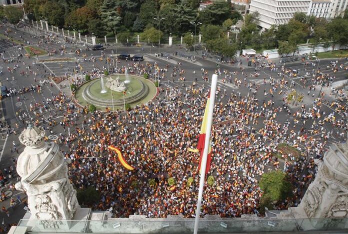 Anti-referéndum en la Cibeles de Madrid; algunos cantaron Cara al Sol e hicieron saludo fascista.
