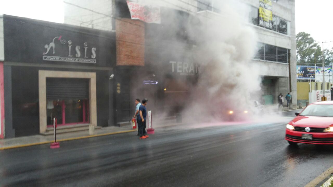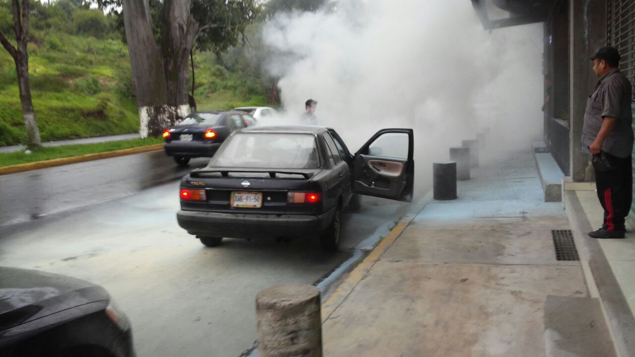 Dos mujeres, un sexagenario y un menor de edad, se llevaron esta tarde el susto de su vida cuando el auto en que viajaban, un Tsuru negro modelo 2007, se convirtió en una nube de humo al encenderse el motor del vehículo.