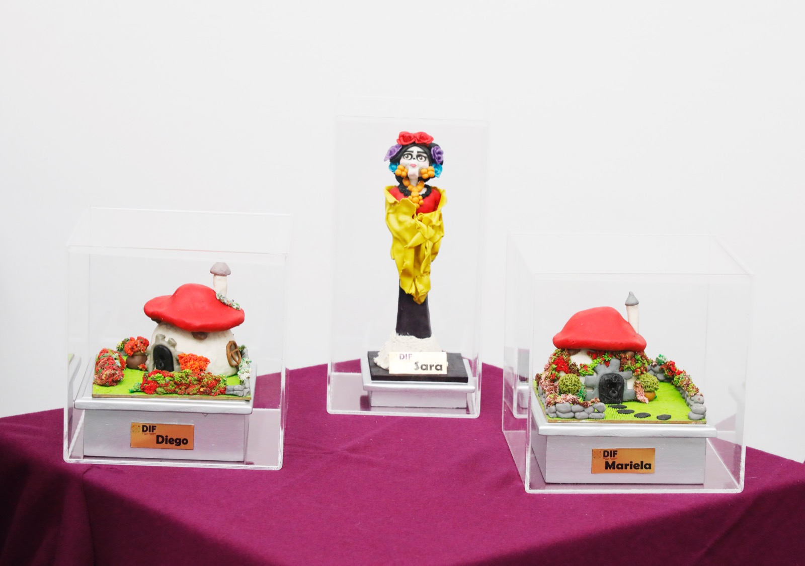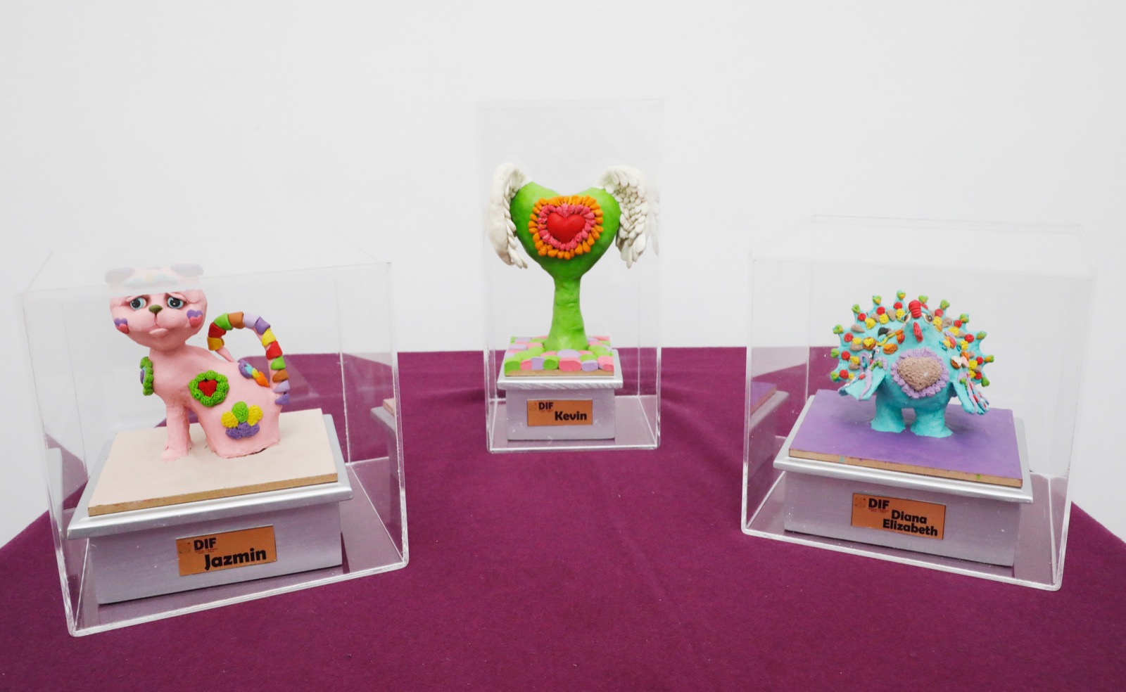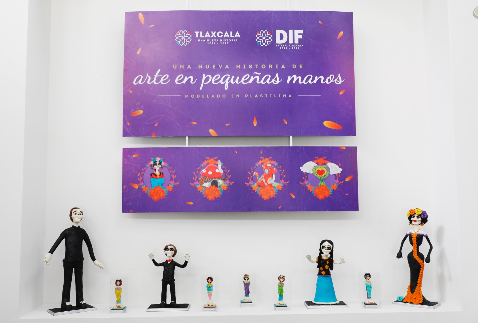 Catrinas, hongos, corazones y alebrijes de diferentes tamaños, formas y colores, forman parte de la colección de 58 piezas de modelado en plastilina titulada “Una Nueva Historia de Arte en Pequeñas Manos” que estará expuesta en el Museo de Arte de Tlaxcala (MAT) a partir de hoy y hasta el 27 de octubre con piezas únicas que fueron realizadas por niñas y niños del Centro de Asistencia Social (CAS) del Sistema Estatal para el Desarrollo Integral de la Familia (Sedif).