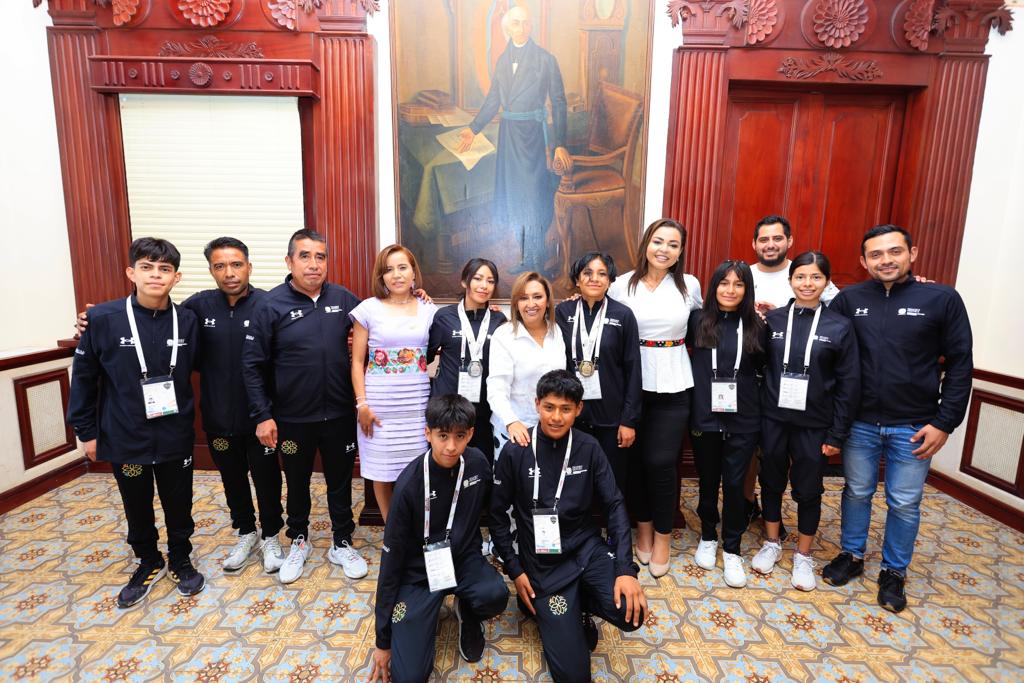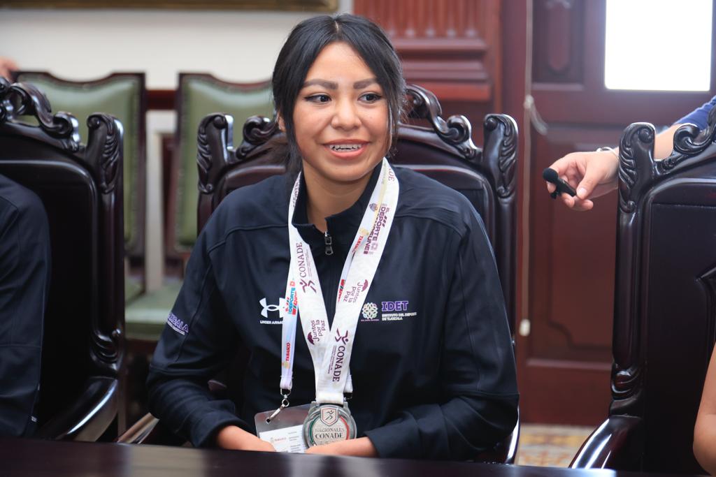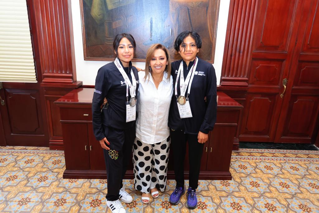 La titular del Ejecutivo local, Lorena Cuéllar Cisneros felicitó a Kenya Cuahutle Pérez e Ita Livi Conde Bado, quienes ganaron medalla de oro y plata, respectivamente, en los Juegos Nacionales Conade 2023.