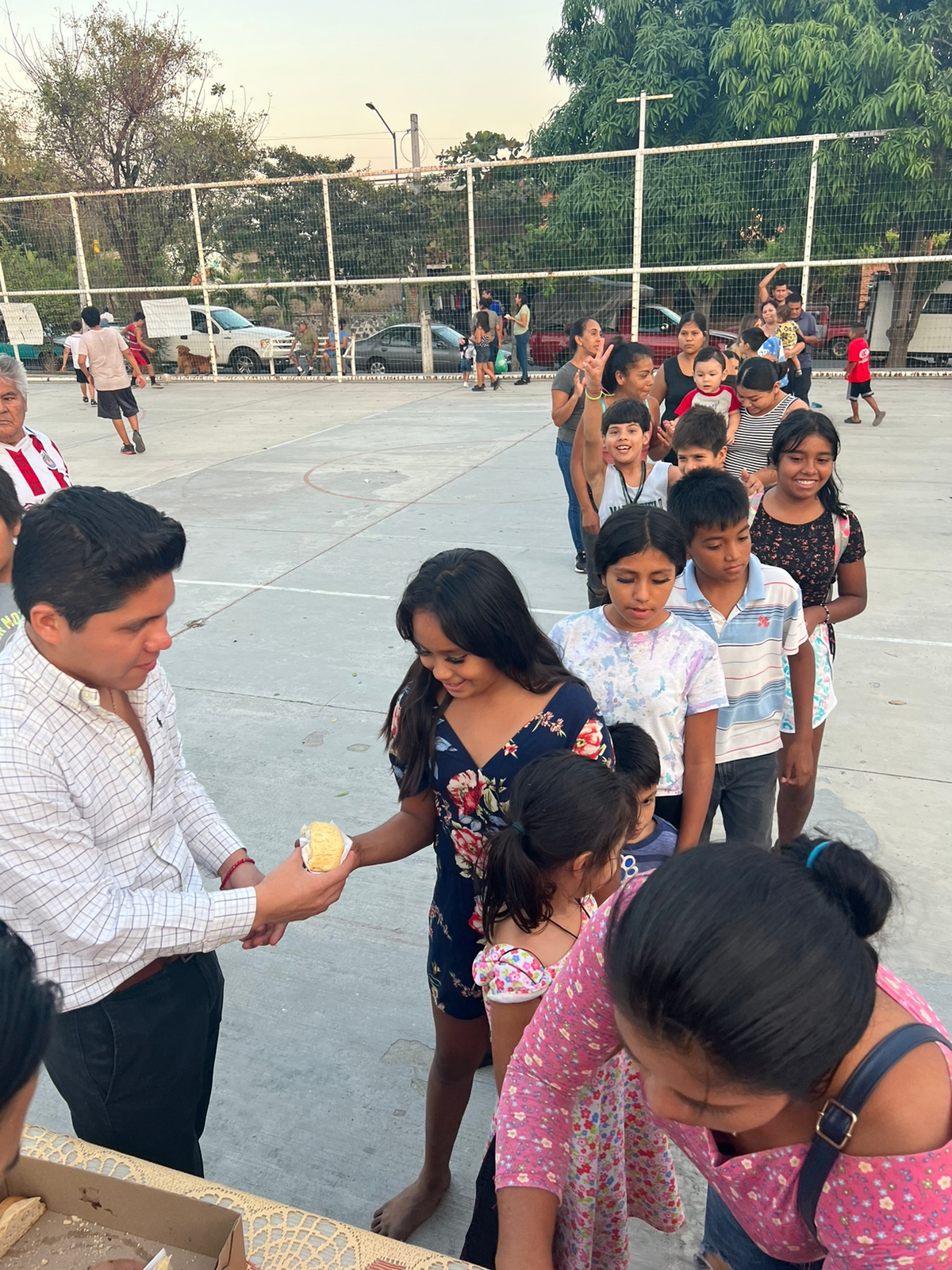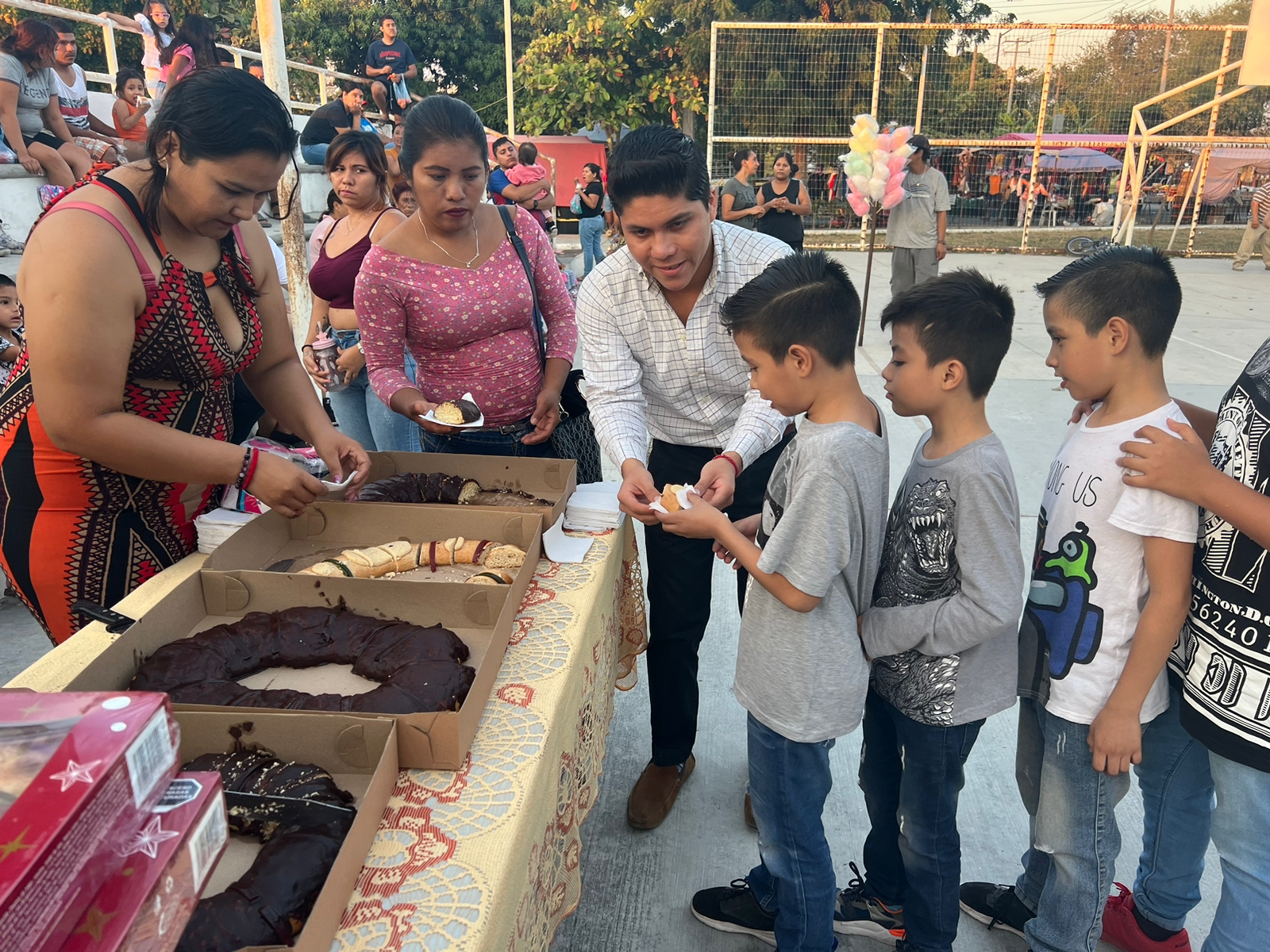 En las canchas techadas de la colonia, algunos niños expresaron su agradecimiento espontáneo al Lic Víctor Torres por su apoyo incondicional y el detalle de invitarlos a partir la tradicional rosca de reyes.