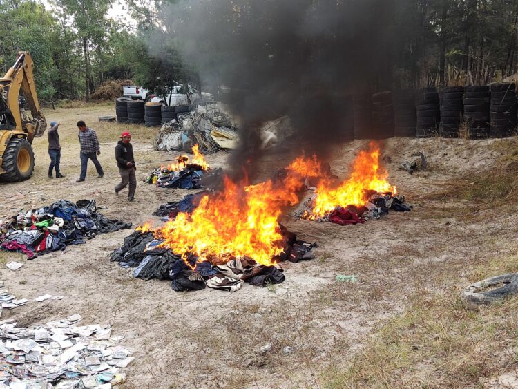 Dentro de los objetos destruidos se encontraban bidones, mangueras, máquinas traga monedas, discos compactos, ropa y calzado deportivo dictaminados como material apócrifo.