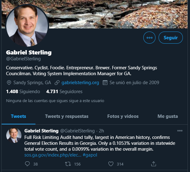 La agencia alemana DW reportó en la tarde que «con cerca de cinco millones de votos emitidos en Georgia, Biden ganó por poco.  Unos 14.000 votos, según los resultados de la elección original. Ahora el demócrata está liderando la votación por 12.284 votos según los recuentos.»