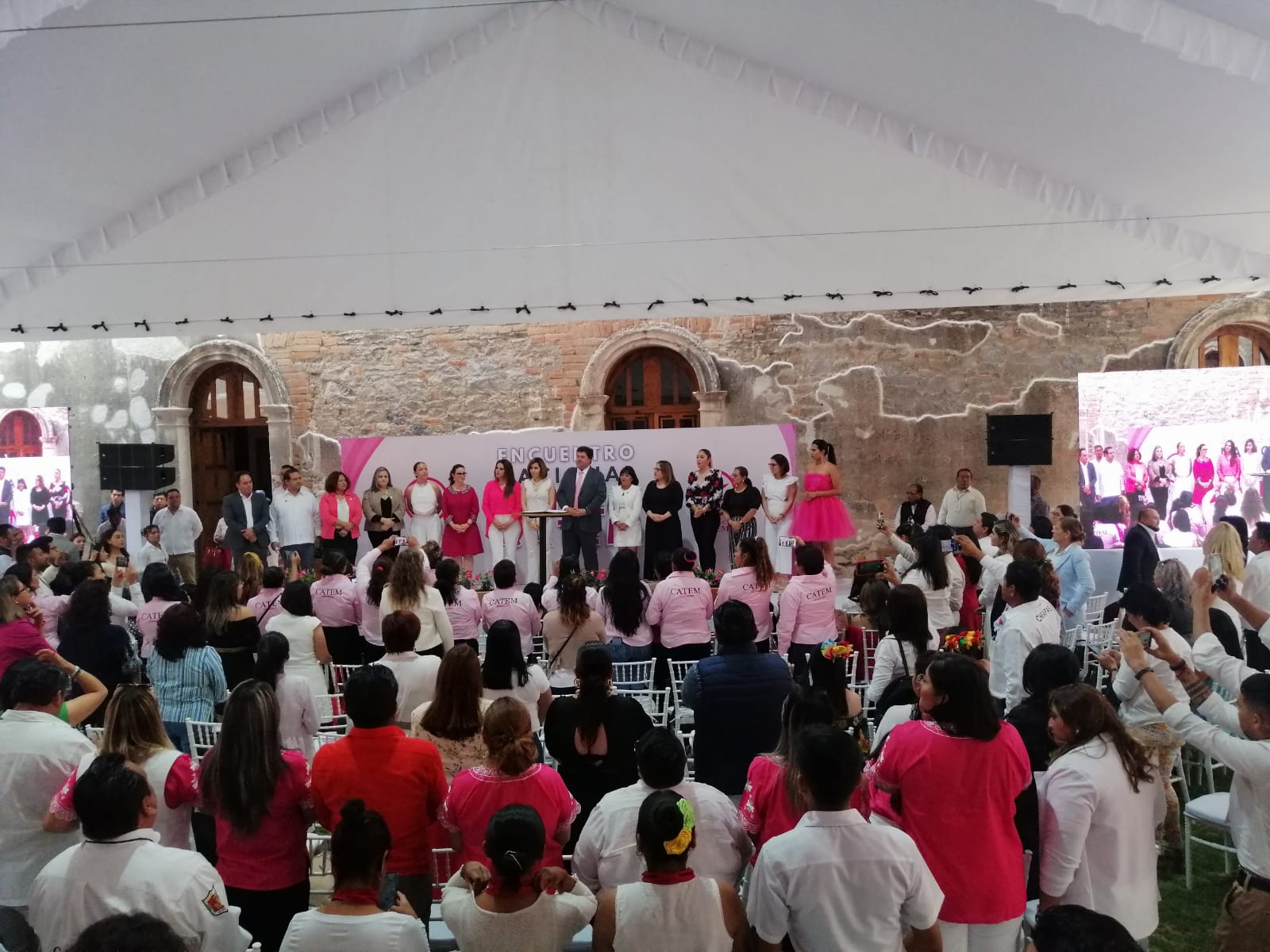 La Confederación Autónoma de Trabajadores y Empleados de México (CATEM), es un gremio que trabaja por el bienestar y empoderamiento de las mujeres en el campo de trabajo, CATEM es la aliada de los trabajadores y hoy aquí estamos 300 mujeres.