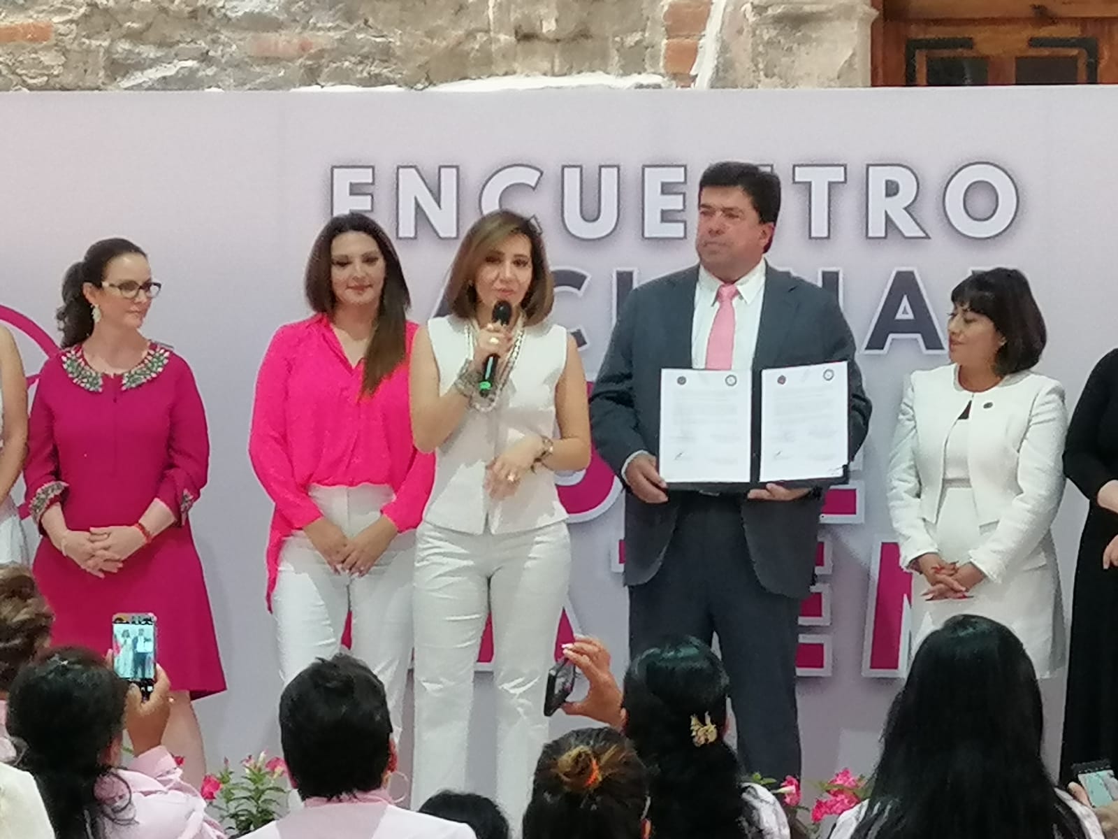 Durante el Encuentro Nacional se realizaron tres mesas de trabajo y discusión con los temas “La Mujer en el ámbito laboral, violencia, acoso y los retos actuals”, donde participaron Yndira Sandoval, activista de la Ley 3 de 3; Altagracia Gómez Sierra, presidenta del Consejo de Promotora Empresarial de Occidente; Guadalupe Díaz Carranza, presidenta del Colegio de Notarios; y senadora Nancy Sierra.