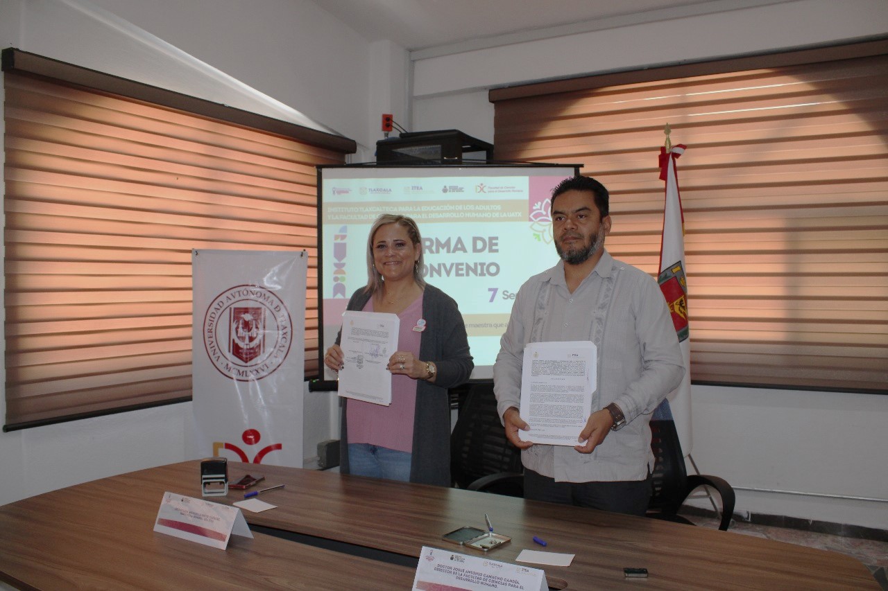 El Instituto Tlaxcalteca para la Educación de los Adultos (ITEA) y la Universidad Autónoma de Tlaxcala (UATx) firmaron convenio de colaboración, con el objetivo de incorporar a las y los estudiantes de esa institución como voluntarios para realizar su servicio social o residencias profesionales, prestando atención educativa a personas que lo requieran.