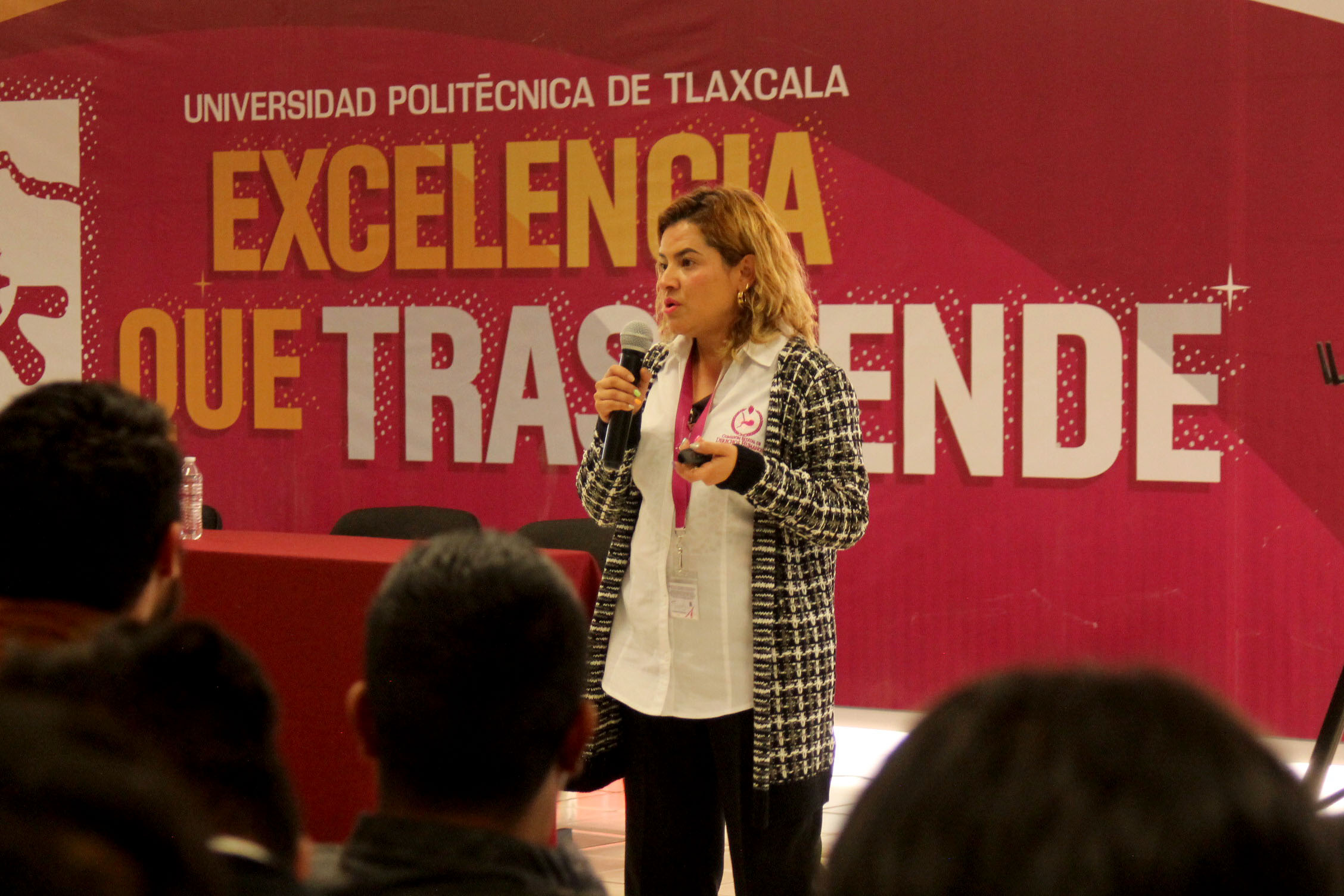 Al final de la firma de convenio de colaboración académica, la visitadora especializada en asuntos de género y contra la trata de personas de la CEDH, Herminia Hernández Jiménez, impartió una conferencia a alumnas y alumnos de la UPTx con el tema «igualdad sustantiva entre hombres y mujeres».