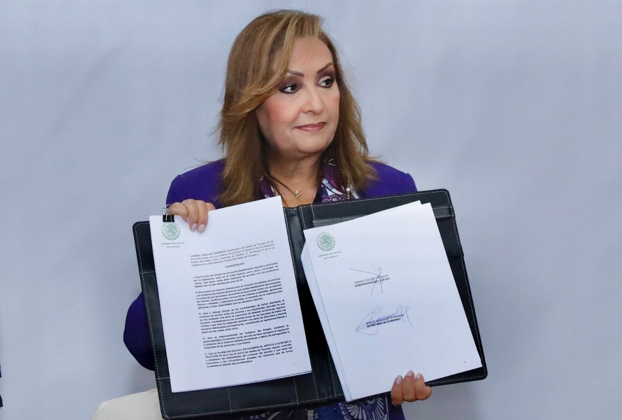 La gobernadora Lorena Cuéllar Cisneros firmó este jueves el decreto para regular la venta y consumo de alcohol, esto durante la Tercera Mesa de Trabajo: Gobierno, Seguridad y Procuración de Justicia, Estado y Municipios, con el objetivo de fortalecer las instituciones responsables de seguridad y procuración de justicia de la entidad para mejorar la paz social.
