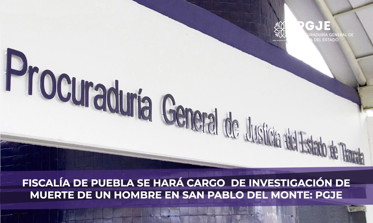 De acuerdo a un reporte de la Procuraduría General de Justicia del Estado de Tlaxcala (PGJE) se informó que, será la Fiscalía General del estado de Puebla quien lleve a cabo la investigación de la muerte de un adulto en San Pablo del Monte, que colinda con territorio poblano.