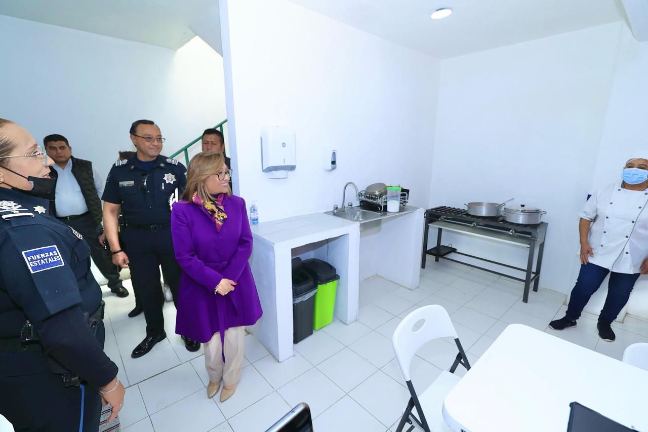 Después, la mandataria estatal visitó las instalaciones del comedor de policías en el mismo municipio, que recientemente fue acondicionado y equipado con recursos del gobierno estatal para brindar una mejor atención nutrimental a los elementos de seguridad.