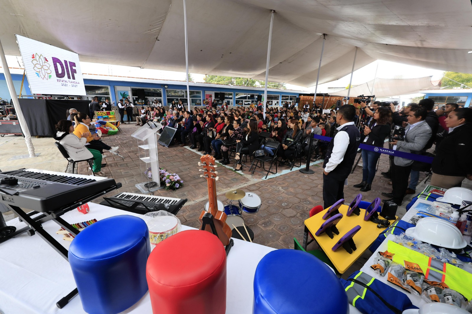 “En este evento hacemos entrega de equipamiento y mobiliario para el fortalecimiento de los 30 Centros de Atención Infantil del DIF estatal. Una de las prioridades de mi gobierno es dar soluciones integrales para nuestros niños y niñas tlaxcaltecas de edades muy tempranas que nos ayuden en su crecimiento”, asentó la mandataria estatal.