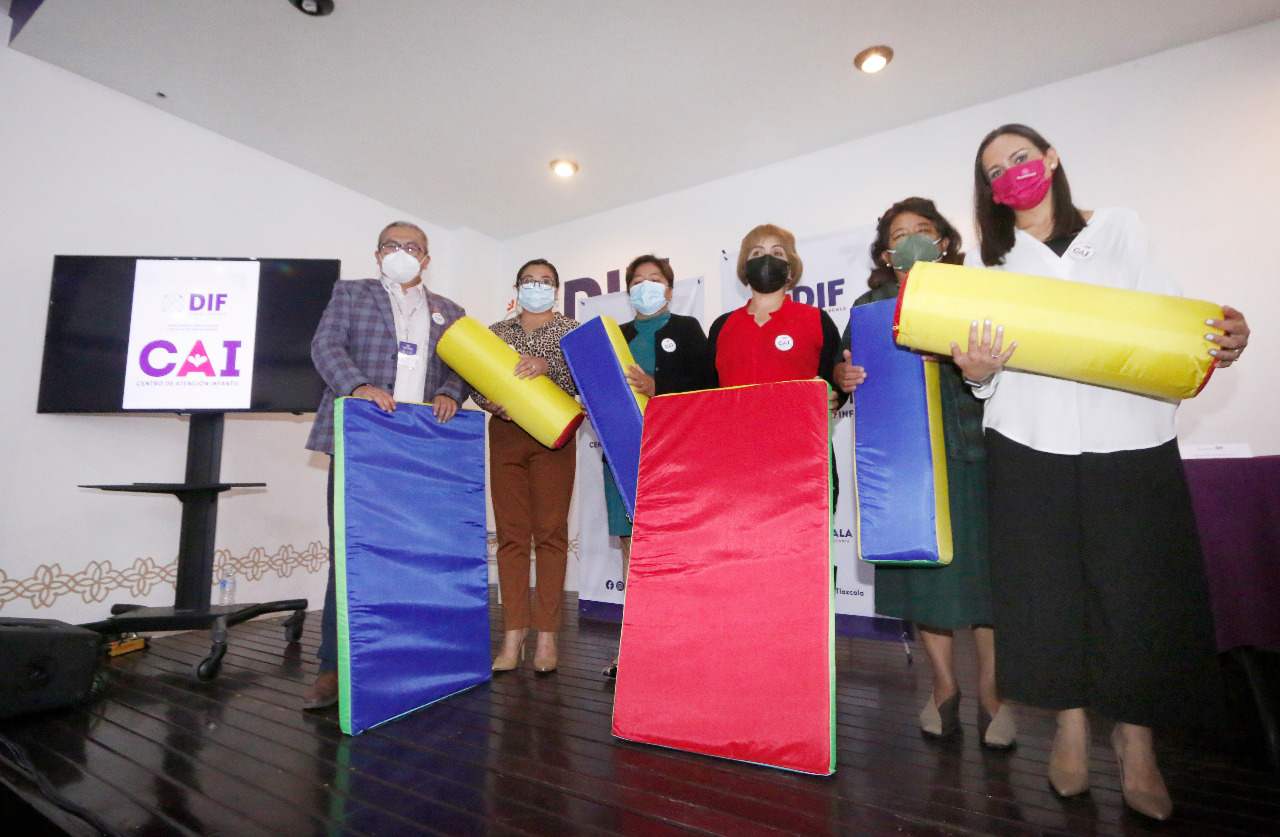 Para fortalecer los estándares de calidad en el servicio que brindan los 20 Centros de Atención Infantil (CAI), la presidenta honorífica del Sistema Estatal DIF, Mariana Espinosa de los Monteros Cuéllar y el secretario de Educación Pública del Estado, Homero Meneses Hernández, hicieron entrega -en una primera etapa- de material didáctico para la estimulación temprana de niñas y niños de Tlaxcala.