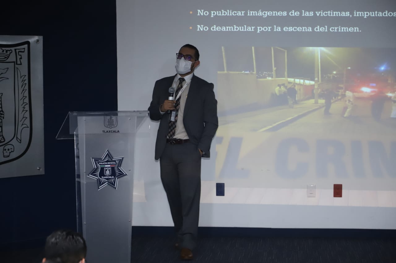 En la primera ponencia, a cargo del director del Departamento de Atención Integral y Justicia Alternativa de la Procuraduría General de Justicia en el Estado (PGJE), Víctor Javier Cortés Zamudio expuso cada una de las etapas que se siguen en una escena del crimen y los alcances que tienen los representantes de los medios de comunicación para efectuar la cobertura de sus notas informativas sin incurrir en hechos que pudieran afectar el desempeño de los efectivos ni se vulneren derechos de terceros como la dignidad humana.