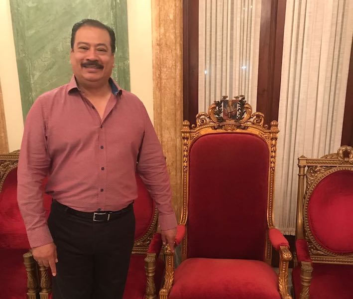 En las gráficas podemos apreciar a Francisco Román Sánchez, frente al Palacio Nacional de República Dominicana, además posando junto a la famosa “Silla de los Alfileres”, la que era utilizada por el Dictador Rafael Leónidas Trujillo Molina en la “Era Trujillo”que fue considerada como de las tiranías más sangrientas de América; Silla que ninguno de los 7 Presidentes que han gobernado Dominicana ha usado nunca, pero que es conservada como símbolo de aquello que la historia no debe repetir en el mencionado país caribeño.