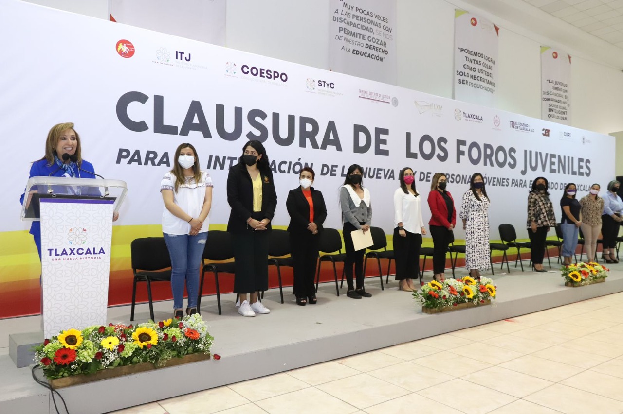 La gobernadora de Tlaxcala, Lorena Cuéllar Cisneros encabezó la clausura de los “Foros juveniles para la integración de la nueva Ley de Personas Jóvenes para el Estado de Tlaxcala”, organizados por la presidenta de la Comisión de Juventud y Deporte del Congreso local, Leticia Martínez Cerón.