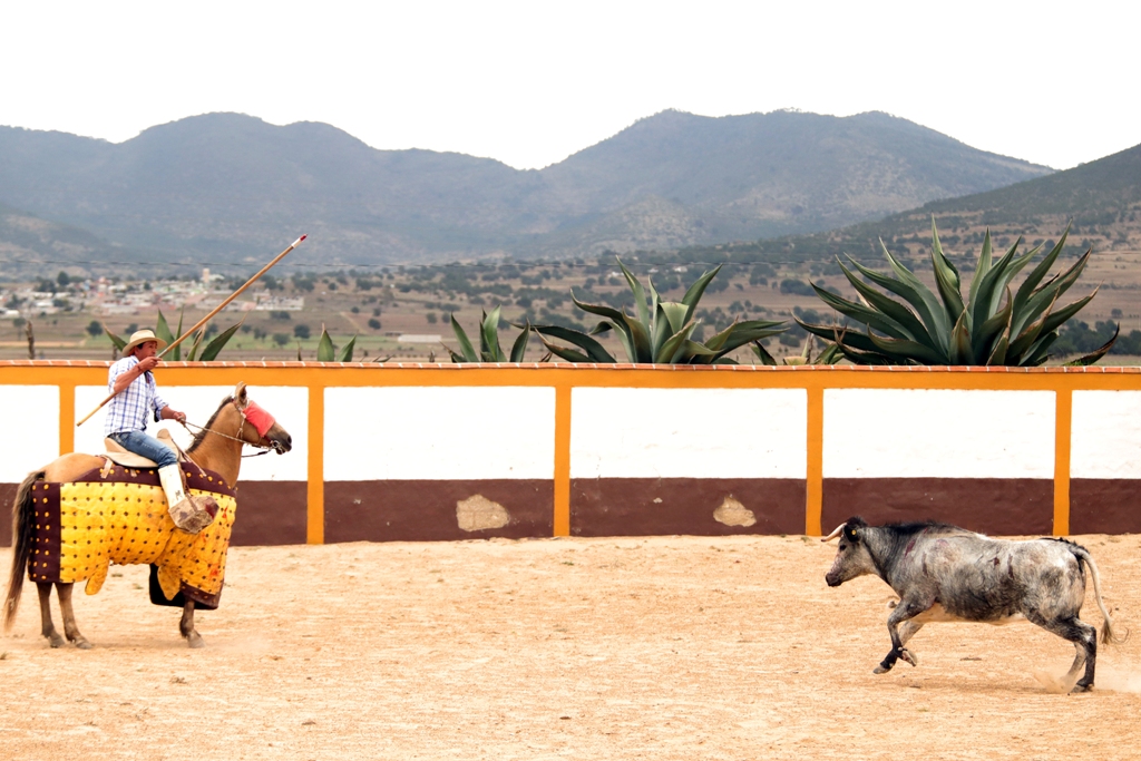 El fino diestro tlaxcalteca Gerardo Sánchez fue invitado por los ganaderos Marco Antonio González y Antonio De Haro para realizar labores de tienta en la placita campera de la prestigiosa ganadería De Haro.