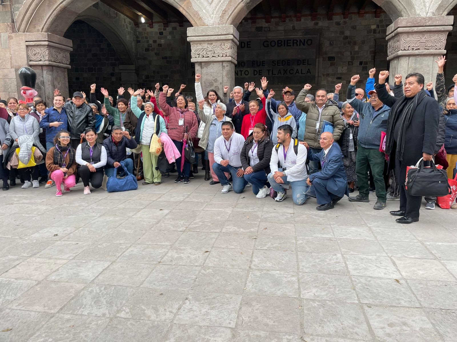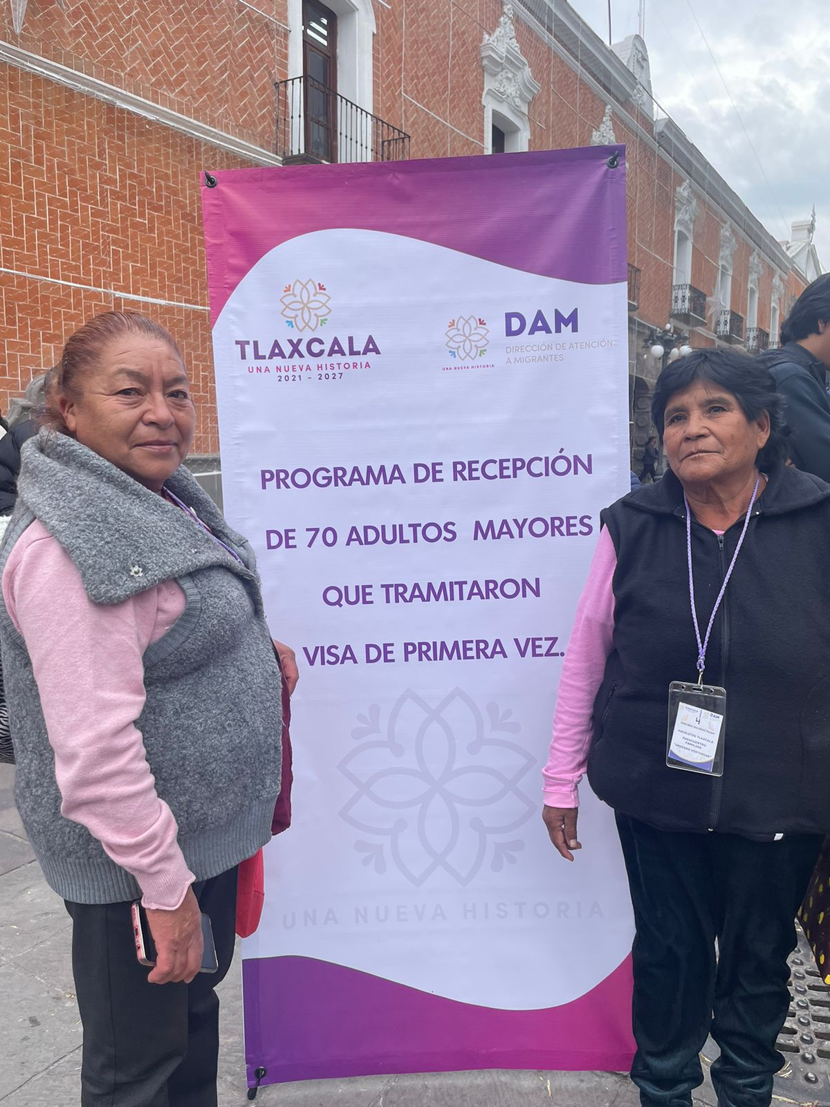 El gobierno del estado apoya con el 50 por ciento del vuelo, viaje redondo, los traslados de Tlaxcala al aeropuerto y acompañamiento con personal de la DAM para cualquier asistencia y es importante resaltar que en esta ocasión también absorbió los gastos de traslado de todos los participantes para el trámite de Visa Americana de los adultos mayores de Tlaxcala a la Embajada de la CDMX.