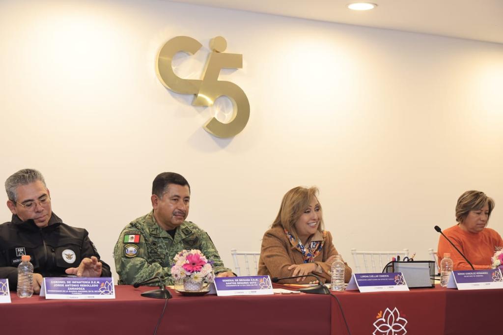 En la reunión realizada en las instalaciones del Centro de Control, Comando, Comunicaciones, Cómputo, Coordinación e Inteligencia (C5i), la titular del Ejecutivo local dio seguimiento a los temas prioritarios de seguridad entre ellos el éxito del programa Mujeres Constructoras de la Paz (Mucpaz), en el que Tlaxcala cuenta con el mayor número de participantes.