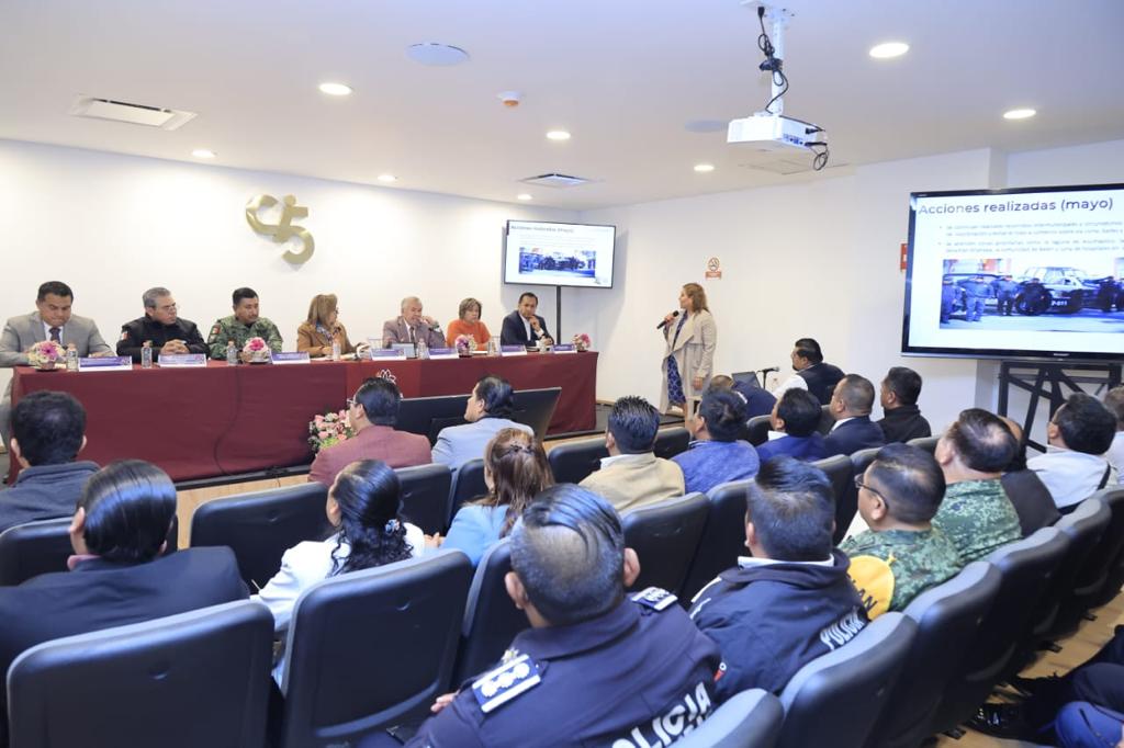 De igual forma, se presentaron los informes de acciones relevantes correspondientes al mes de mayo, de coordinación operativa entre los tres órdenes de gobierno, el estatus de los convenios entre los ayuntamientos y el Órgano de Fiscalización Superior (OFS), así como el tema de la licencia colectiva de armamento.