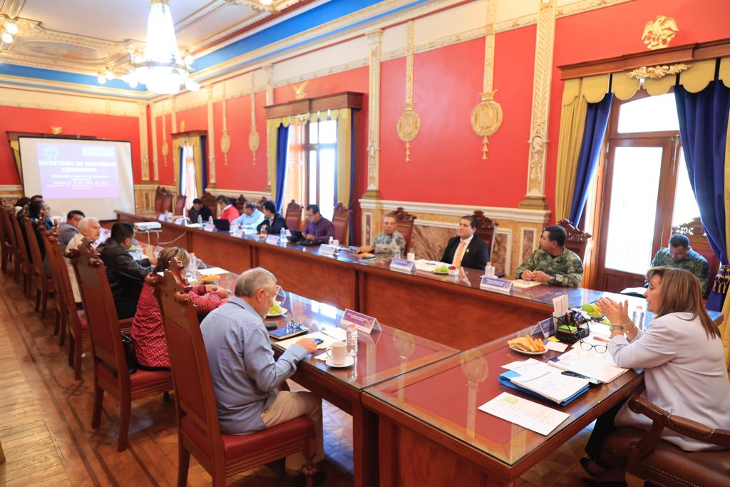 Durante la Mesa para la Construcción de Paz y Seguridad, dialogó sobre temas de seguridad, estrategias y medidas a implementar para dar una atención directa y disminuir el robo de vehículos en los municipios y el estado.