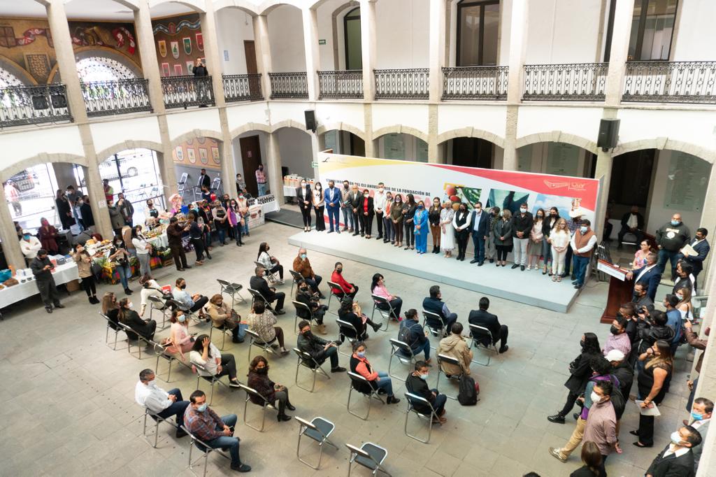 La gobernadora del Estado, Lorena Cuéllar Cisneros y la Diputada Local, Leticia Martínez Cerón, conmemoraron el 151 aniversario de la fundación de Atltzayanca con una muestra artesanal, gastronómica y cultural en el Patio Vitral del Congreso de Tlaxcala.