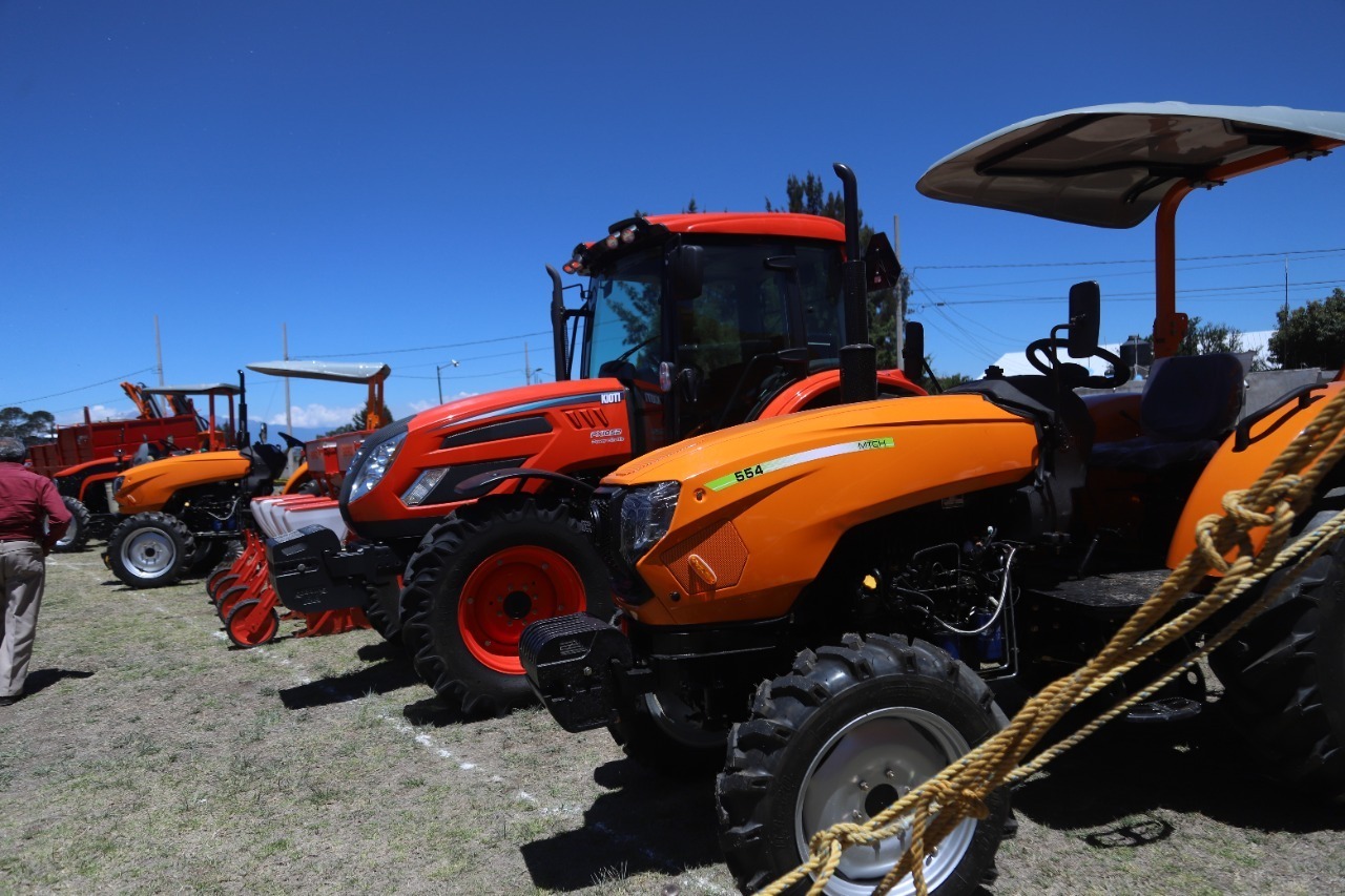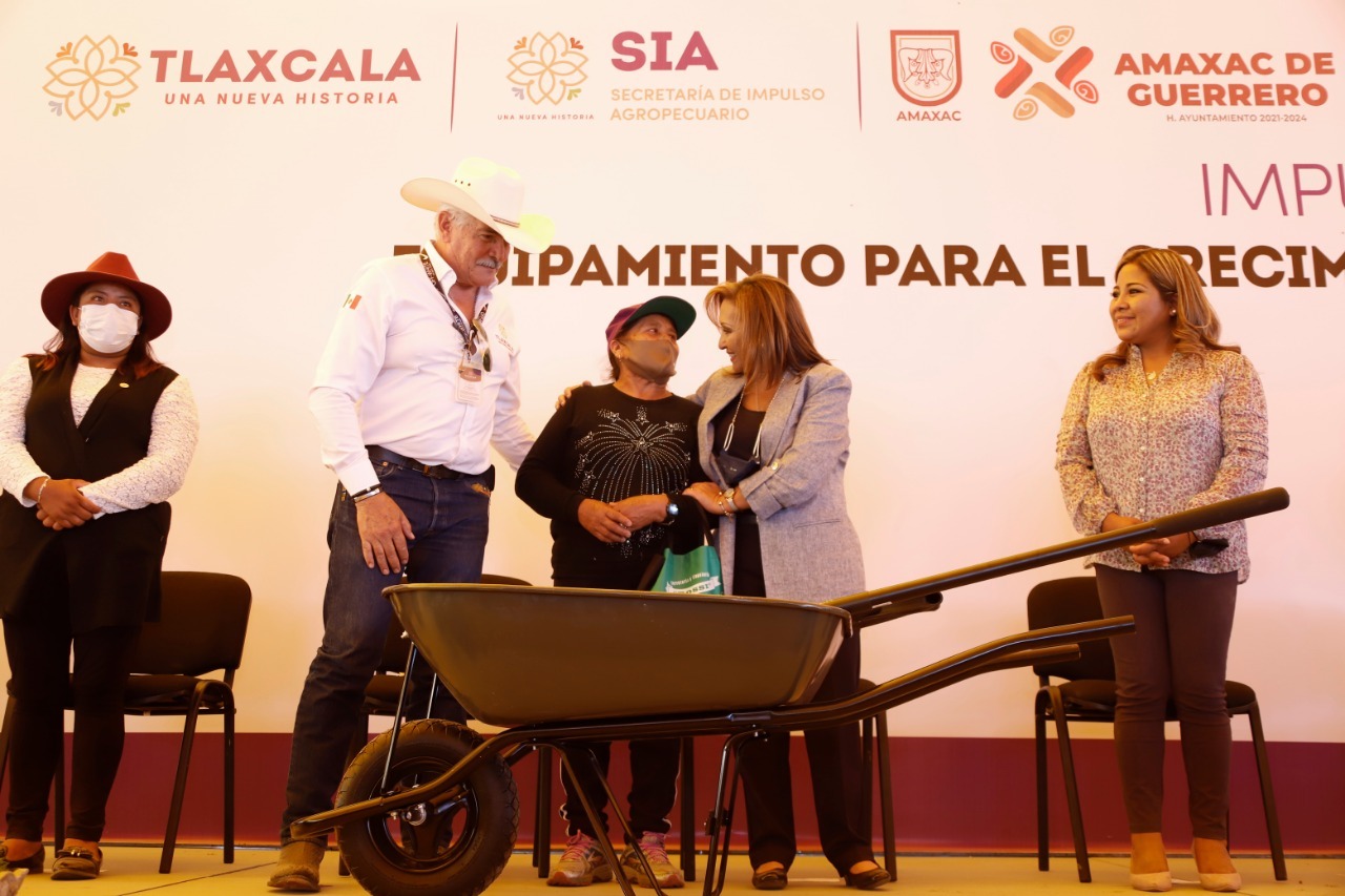 De manera simbólica, la gobernadora entregó las llaves de un tractor de 55 y 80 caballos de fuerza a Maribel Nezahualcóyotl Nava de Acuamanala y a Alejandro Flores Reyes de Calpulalpan; dos cartas de autorización para un módulo de producción de huevo y otra de maquinaria para la elaboración de alegrías con piloncillos a Adriana Vázquez Zorrilla de Xaloztoc y a Rosa María Téllez Huesca de Chiautempan, así como kits de herramienta agrícola.