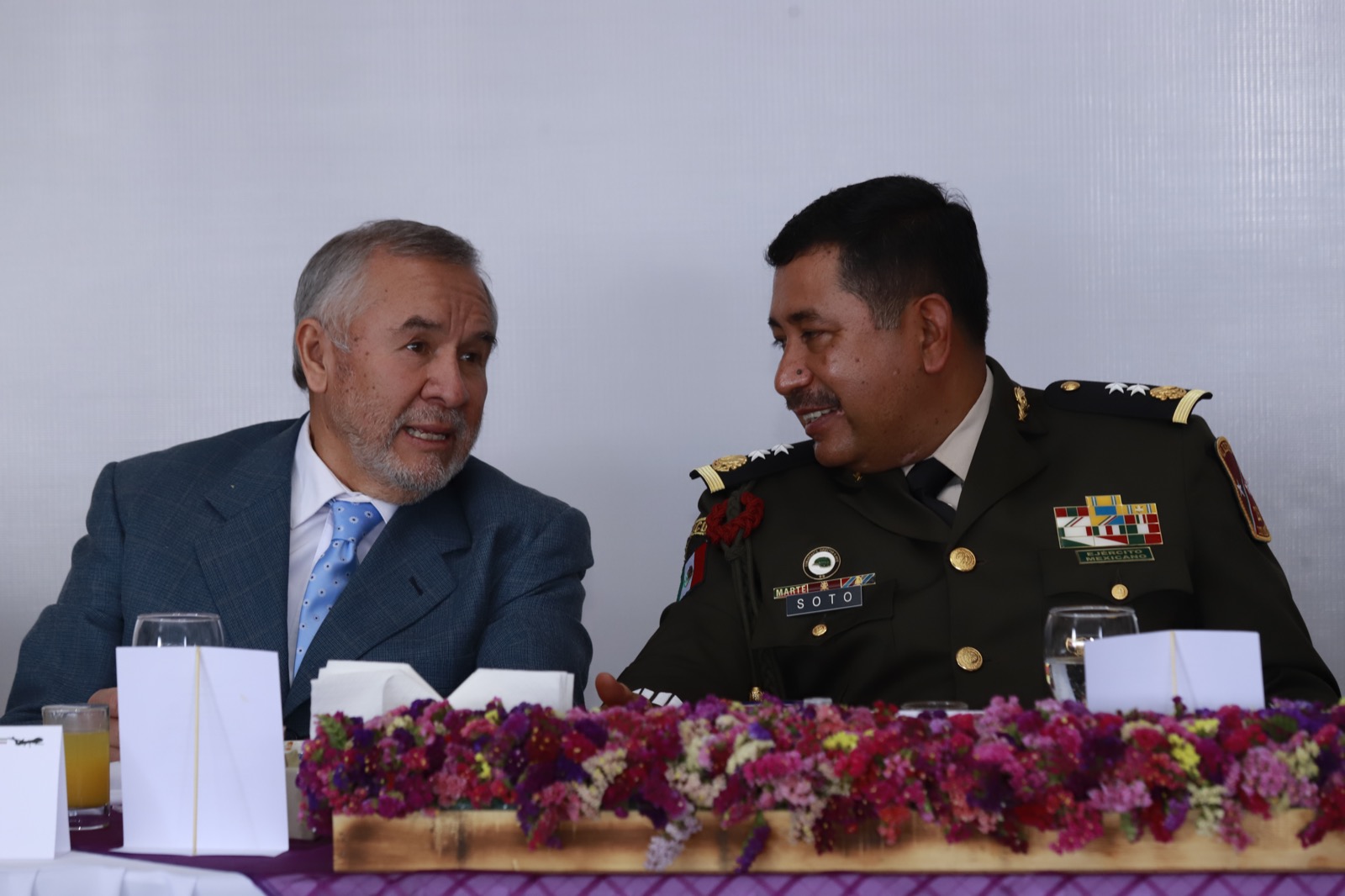 Así como el comandante de la 23 Zona Militar, Santos Gerardo Soto; el director del Centro de Adiestramiento Regional de la Sexta Región Militar, Adolfo Ríos Gómez; el delegado de la Fiscalía General de la República (FGR) en el estado, Rafael Contreras Labra; el presidente de la mesa directiva del Congreso local, Bladimir Zainos Flores y el presidente municipal, Alfredo Ponce Hernández.