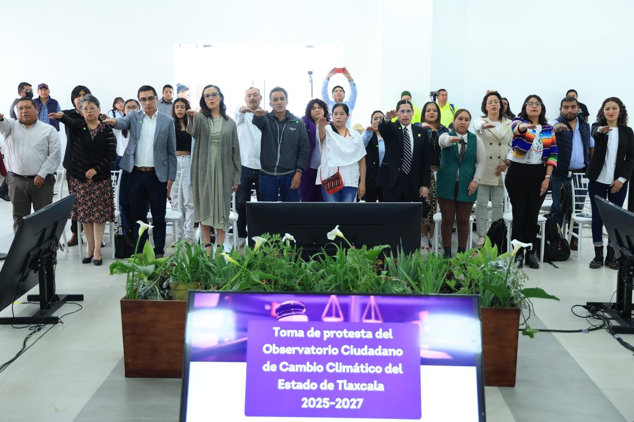 La mandataria local tomó protesta a los integrantes del Observatorio Ciudadano de Cambio Climático del Estado de Tlaxcala, entidad pionera en el país en la creación de este organismo, luego de la publicación de sus lineamientos en el Periódico Oficial el 30 de enero de 2025.