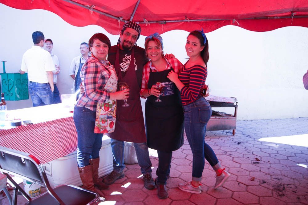 El evento contó con un amplio respaldo del sector empresarial, y en particular de distinguidas familias que se echaron sobre los hombros la tarea de llevar las deliciosas paellas compuestas de arroz, camarón, ostión, jaiba, pulpo, pollo, chorizo, salchicha, ejotes y calabacitas, y escanciadas con vinos de mesa.