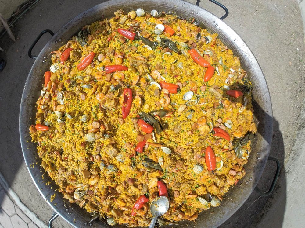 Según la tradición española, el popular y barroco platillo basado en arroz seco proviene de Valencia; aunque tal honor es disputado por la ciudad italiana de Nápoles, pues el plato ya aparece con varios de sus ingredientes actuales en un grabado del siglo xvi contenido en el libro Opera de Bartolomeo Scappi, un cocinero del papa Pío V, donde se le llama “padella”.