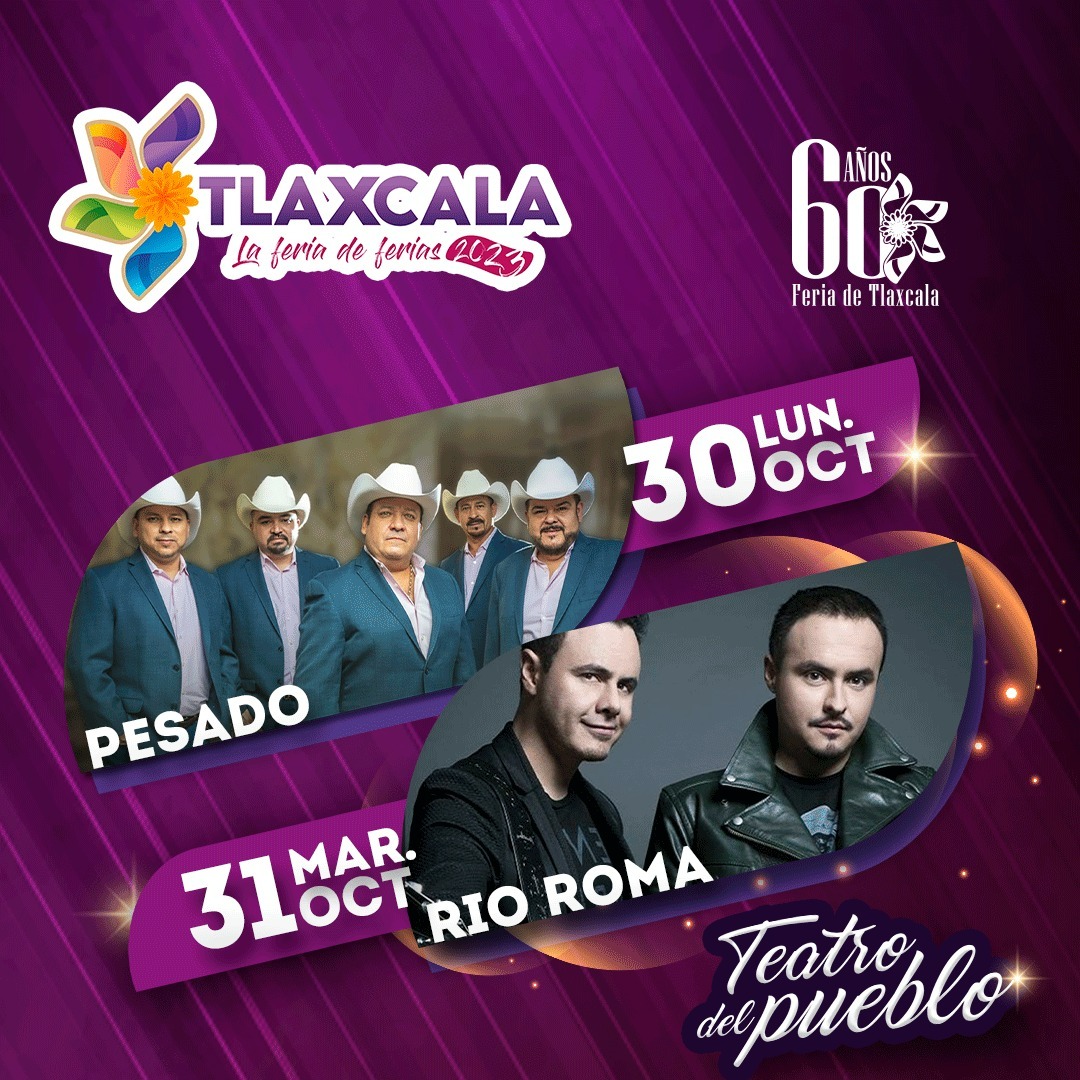 El lunes 30 de octubre llega al escenario, Pesado, una de las mejores agrupaciones de la música regional mexicana que tocará el corazón de los presentes con sus acordes; el martes 31 de octubre, el dúo de pop Río Roma arrancará suspiros con sus baladas en una velada romántica e inolvidable.