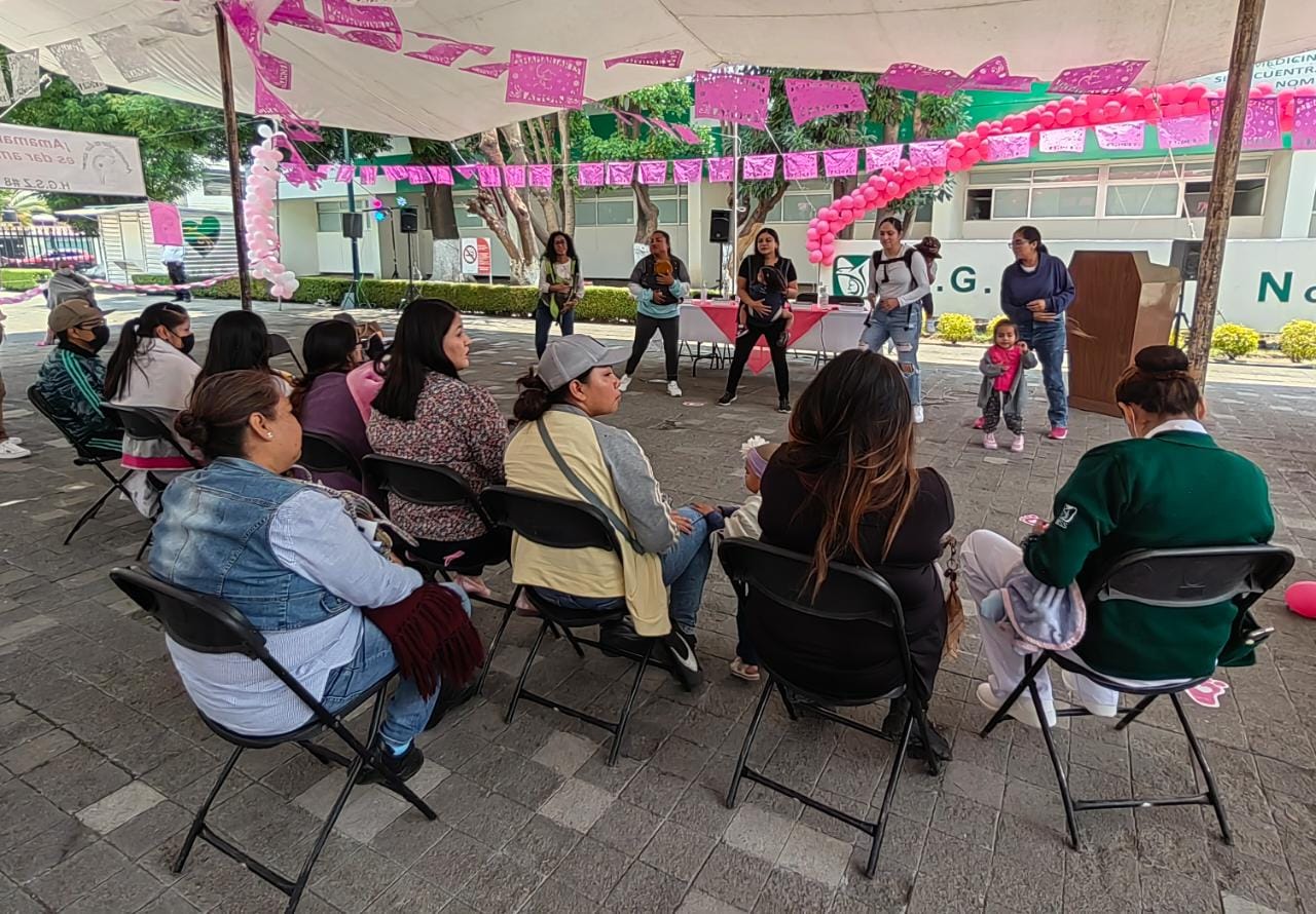 En los stands de la “Feria de Lactancia Materna”, otorgaron capacitación sobre señales de alarma durante el embarazo, atención amigable, higiene personal, salud bucal, nutrición y alimentación correcta; técnicas de amamantamiento y extracción de leche materna, beneficios del porteo (sistema de transporte que permite el contacto continuo), métodos de planificación familiar y servicios de guarderías IMSS.