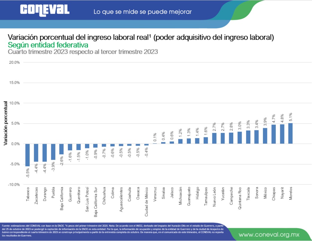 Esa variación fue la sexta más alta en México, después de la de Morelos, con 5.1%; Nayarit, 4.8%; Chiapas, 4.7%; Estado de México, 3.9%; y Sonora, 3.4%.