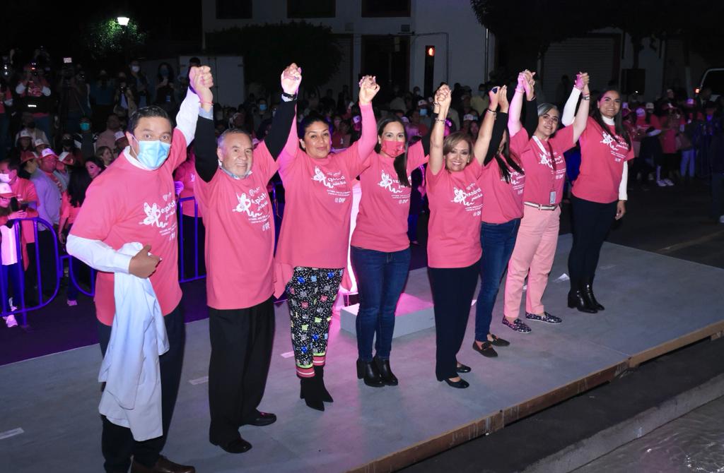 En el evento, al que acudieron las titulares de los poderes Legislativo y Judicial, Leticia Martínez Cerón y Mary Cruz Cortés Ornelas, respectivamente, funcionarios del Gobierno del Estado, así como titulares de los sistemas municipales DIF, y de la Comisión Estatal de Derechos Humanos (CEDH), la titular del Poder Ejecutivo local destacó la importancia del mes rosa para sumar esfuerzos para combatir el cáncer de mama.