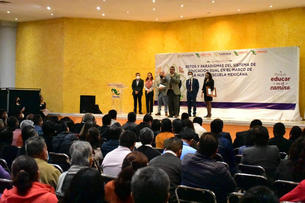 Con el objetivo de fomentar la excelencia educativa en el subsistema, el Colegio de Estudios Científicos y Tecnológicos del Estado (CECyTE) efectuó la conferencia magistral “Retos y paradigmas del sistema de educación dual en el marco de la Nueva Escuela Mexicana”.