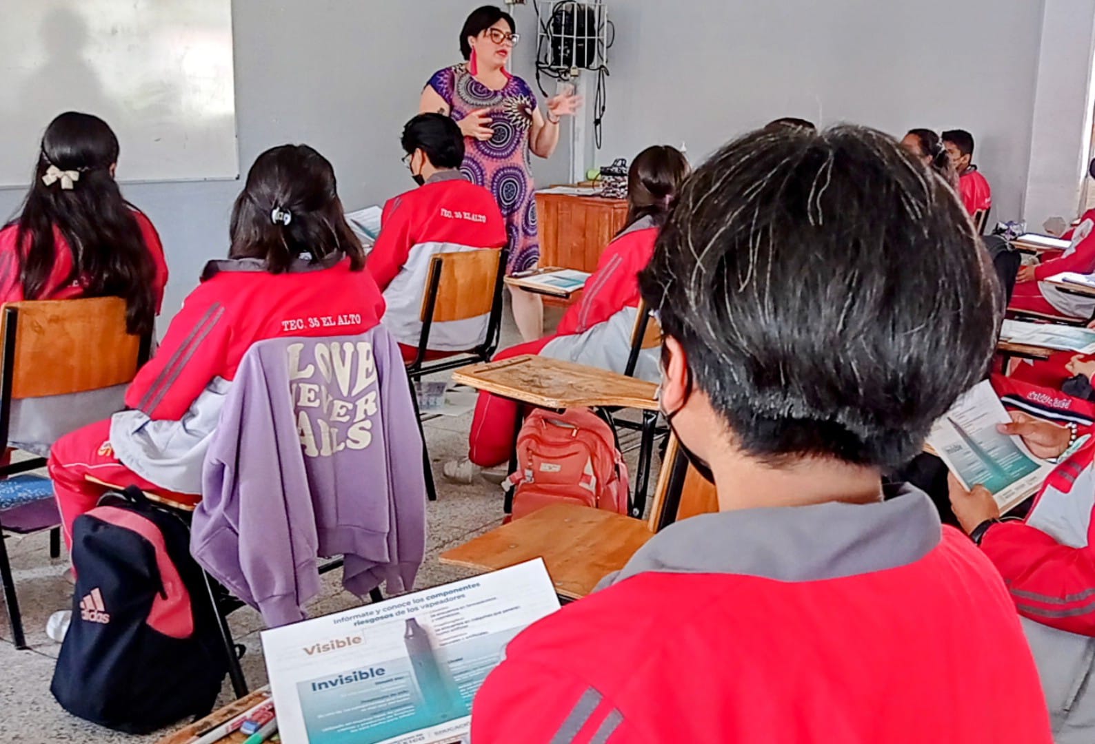 En la Secundaria Técnica 35 de la colonia El Alto de Santa Ana Chiautempan, estudiantes de tercer año participaron en una plática y taller que brindó la maestra Sandra Rojas Osorno, con los temas de vapeadores ¡neta son tóxicos! y tabaco ¡te afecta a ti y a todos!