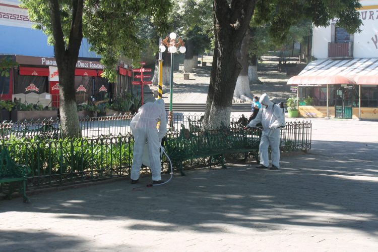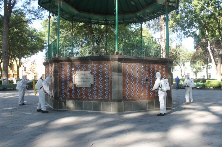 Como ya se informó, este día se efectuó la desinfección en el parque central de la plaza de la Constitución, en la Plaza Xicohténcatl y el parque de San Nicolás; mañana se prevé implementar esta medida en las instalaciones del mercado Emilio Sánchez Piedras y otras zonas, pero la intención es abarcar la mayor parte de espacios públicos.