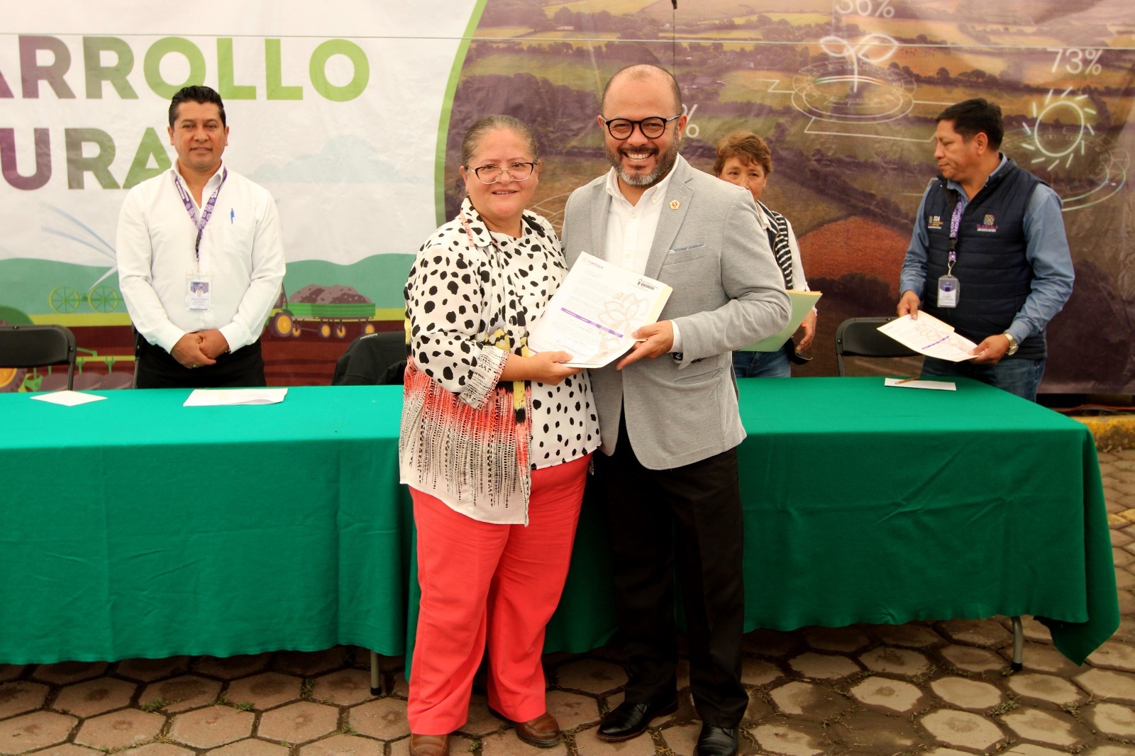 Durante el evento se otorgaron camas biointensivas, especies menores, módulos para la protección de frutillas, jitomate y nopal, parcelas de frijol de mata y enredador, así como para la rehabilitación de invernaderos y equipamiento.