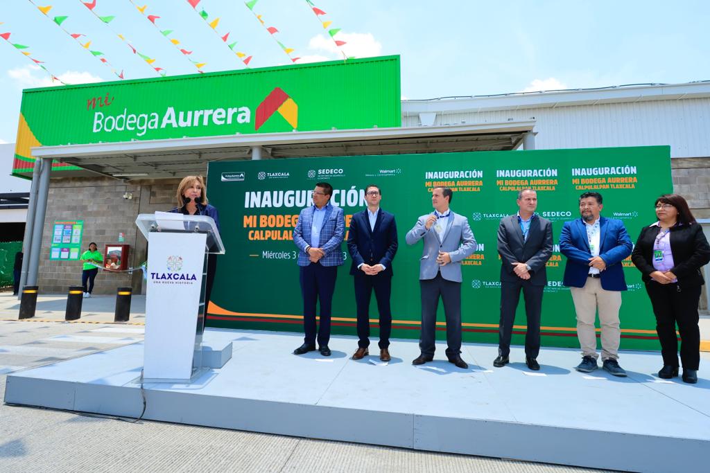 La titular del Ejecutivo local, Lorena Cuéllar Cisneros encabezó el corte del listón inaugural de la tienda Bodega Aurrera en Calpulalpan, en la que el Grupo Walmart invirtió 53 millones de pesos para la construcción de esta nueva sucursal que generará 45 empleos formales directos.