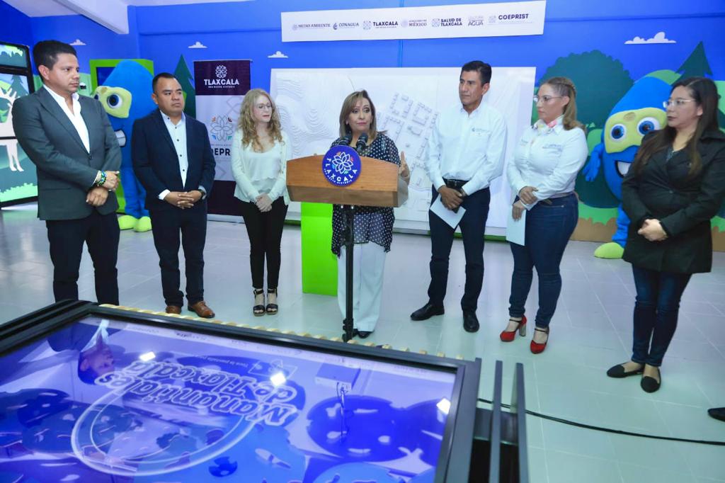 Acompañada del coordinador de Comunicación y Cultura del Agua de la Comisión Nacional del Agua (Conagua) del Gobierno de México, José Solís Juárez, la mandataria tlaxcalteca resaltó la importancia de este espacio que será visitado por niñas, niños y público en general.