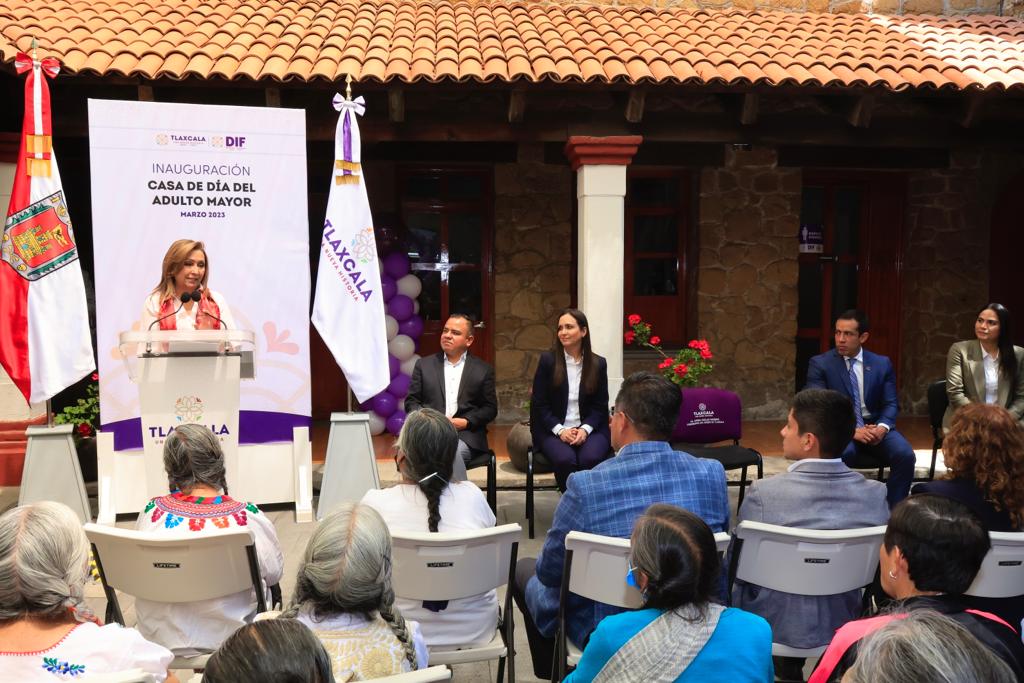 En su intervención, la presidenta honorífica del Sistema Estatal DIF, Mariana Espinosa de los Monteros explicó que se estima que en Tlaxcala hay aproximadamente 145 mil adultos mayores de 65 años y más, quienes podrían acceder a los servicios que ofrece la Casa de Día del Adulto con el propósito de promover su integración en la sociedad, contribuyendo a la creación de una cultura de respeto y trato digno.