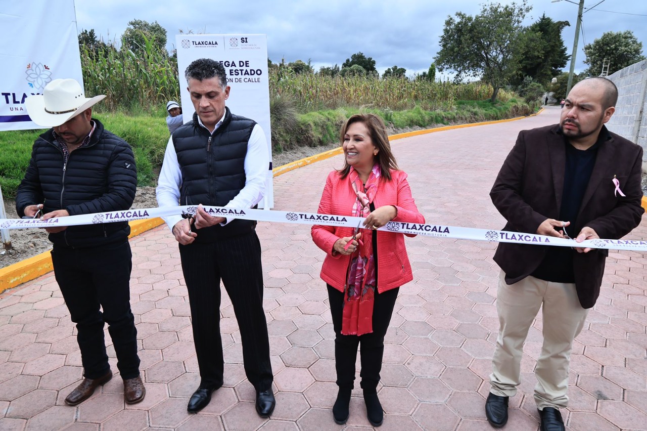 La gobernadora Lorena Cuéllar Cisneros encabezó el corte del listón inaugural de la rehabilitación de tres calles en los municipios de Santa Cruz Tlaxcala y Tzompantepec, que beneficiarán directamente a más de 24 mil habitantes de ambas demarcaciones.