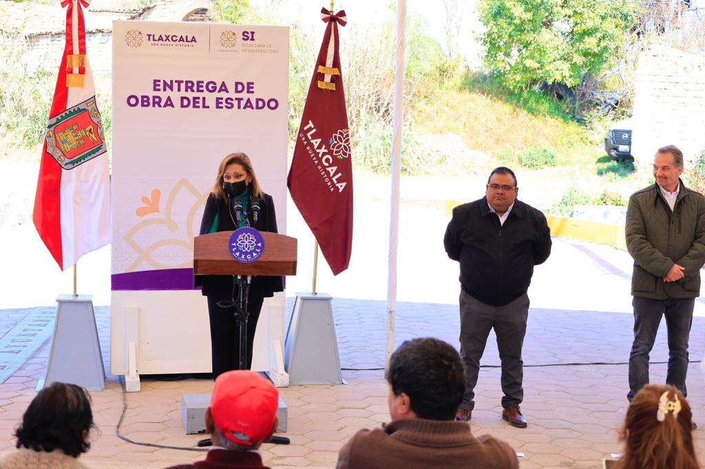 El Gobierno del Estado que encabeza Lorena Cuéllar Cisneros, a través de la Secretaría de Infraestructura (SI), inauguró infraestructura pública consistente en guarniciones, banquetas, pavimento con adoquín, agua potable y alcantarillado sanitario en la calle Buena Vista de la colonia Santa Cruz Capulinares del municipio de Tetlatlahuca.