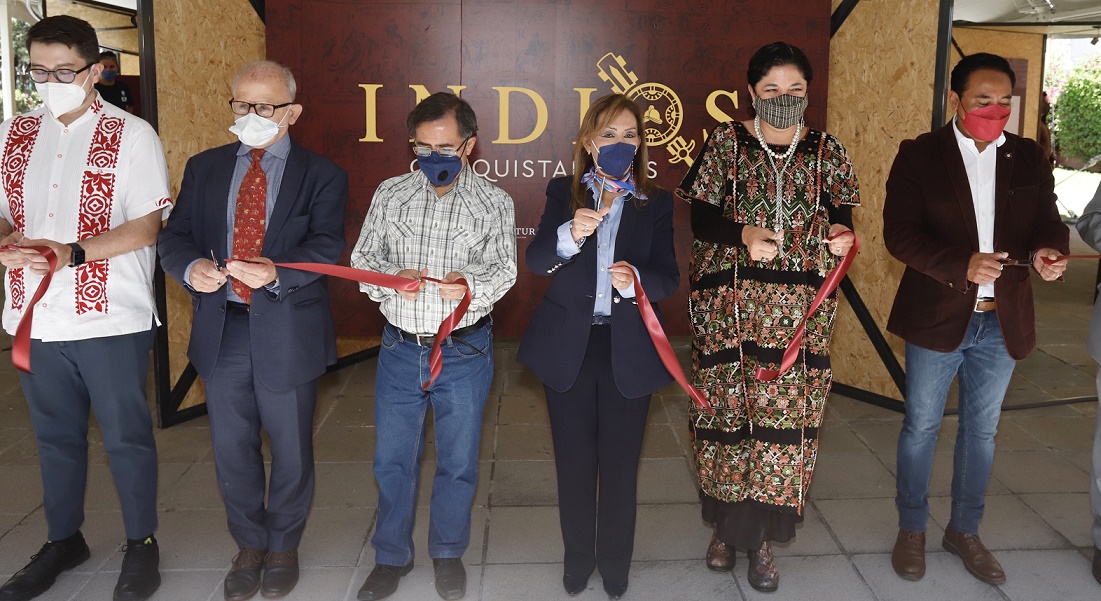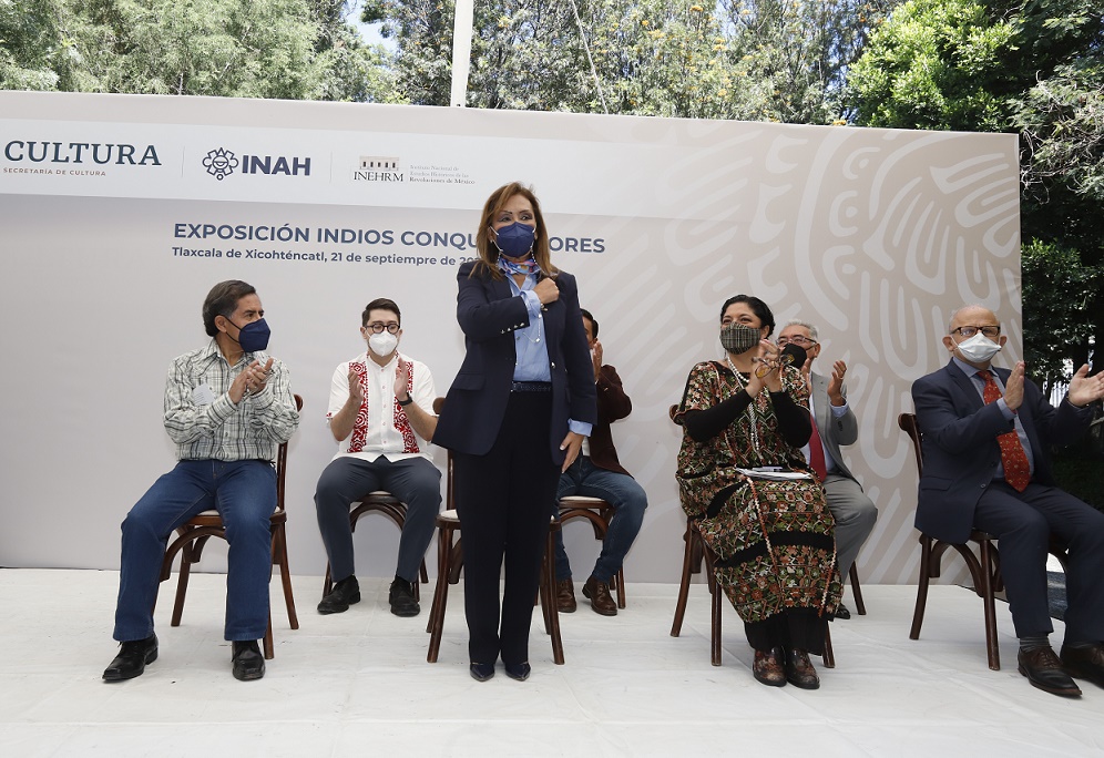 La gobernadora Lorena Cuéllar inauguró este martes la exposición «Indios Conquistadores» en el patio central del Palacio de la Cultura, sito en la ex sede del Instituto Tlaxcalteca de la Cultura (ITC) y actualmente de la secretaría federal de Cultura (SC).