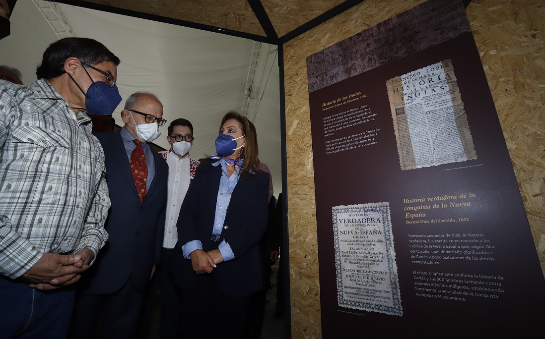 Acerca de la exposición, un comunicado oficial de la SC informa que “presenta el proceso de la Conquista desde el punto de vista de las culturas indígenas que se aliaron con los españoles para poner fin al sistema de dominación establecido por México-Tenochtitlan”.