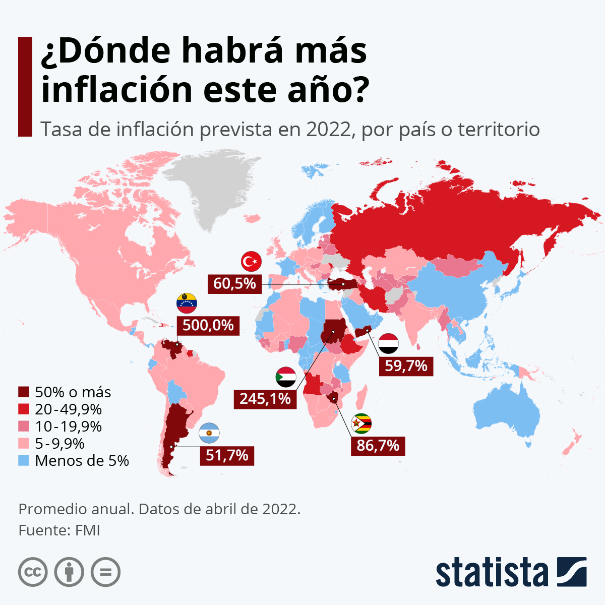 Las cifras son impresionantes. En Estados Unidos llegó al 8,3 %; en la zona del euro, al 7,4 %; en Chile, 10,5 %; México, 7,7 %; Brasil, 12,1 %, y en Colombia ya supera el 9 %. Como el alza de los precios les roba el poder adquisitivo a las personas, los gobiernos hacen esfuerzos para evitar el impacto político de un fenómeno que empobrece a millones de personas.