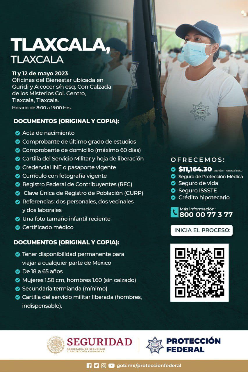 El delegado de la Secretaría del Bienestar Federal en Tlaxcala, Carlos Luna Vázquez informó que, como parte de la colaboración institucional a nivel federal la Secretaría de Seguridad y Protección Ciudadana lleva a cabo un reclutamiento en Tlaxcala para mujeres y hombres interesados en pertenecer al cuerpo de Protección Federal.