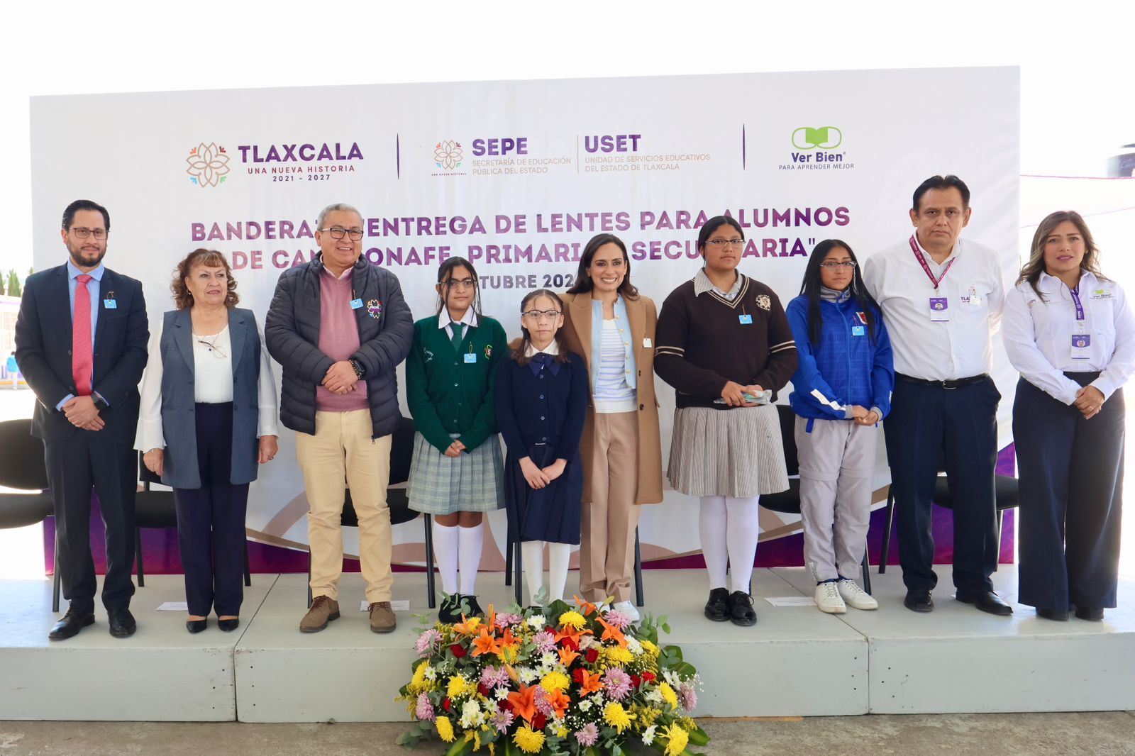 El titular de la Secretaría de Educación Pública del Estado y de la Unidad de Servicios Educativos del Estado de Tlaxcala (SEPE-USET), Homero Meneses Hernández y la presidenta honorífica del Sistema Estatal para el Desarrollo Integral de la Familia (Sedif), Mariana Espinosa de los Monteros Cuéllar, iniciaron la entrega de lentes a través del “Programa Ver Bien para Aprender Mejor”, en beneficio de 8 mil 620 alumnos de educación básica.
