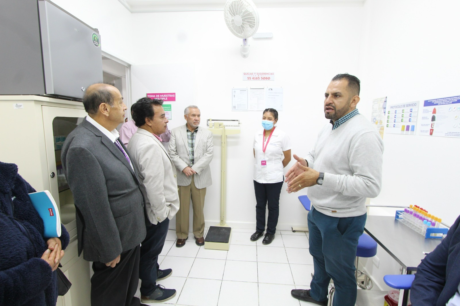 Posteriormente, las autoridades y representantes sindicales realizaron un recorrido por los consultorios, módulo dental, área de tomas de muestras, ginecología y farmacia para constatar los cambios en el mobiliario, así como para que conocieran el programa de citas y los insumos nuevos de laboratorio.