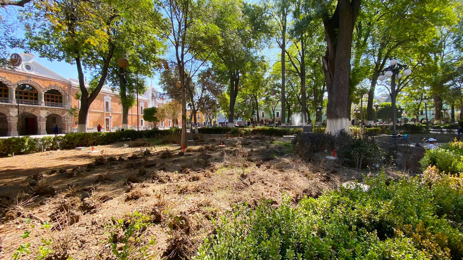 El gobierno del estado realiza trabajos de remodelación en las áreas verdes de la Plaza de la Constitución con la finalidad de mejorar la imagen urbana, resaltar la belleza del estado y que la población tlaxcalteca pueda disfrutar de espacios públicos dignos, seguros y limpios.